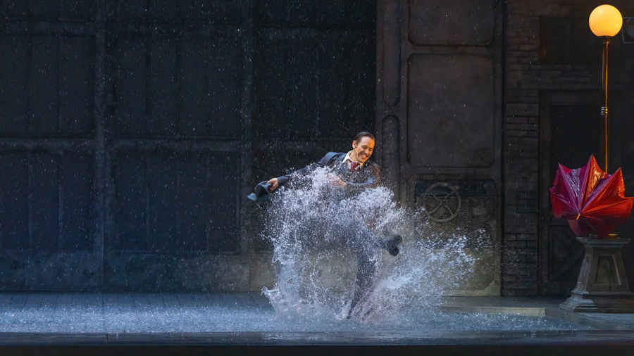 音乐剧《雨中曲》改编自米高梅1952年同名经典电影,诠释默片巨星唐·洛克伍德领有昂贵的东说念主气、钞票,但好莱坞行将恒久变嫌。职责室里有传言一种新式电影行将出生,演员们会在内部语言、唱歌、跳舞。唐·洛克伍德(格兰特·阿米拉尔饰)与齐唱团女孩凯西·塞尔登(夏洛特·古奇饰)、“得意果”科斯莫(马修·麦迪逊饰)联袂破局,最终在雨中跳出经典舞步。音乐剧集聚《雨中曲》《晨安》《摩西假定》等电影金曲,更以秀气性的“雨中独舞”场景成为众人不雅众心中的“欢乐天花板”。制作团队每场使用6吨水,通过100米重型橡胶软管轮回系统保抓水温37℃,既复原电影中男主角经典舞步的舒心淋漓,又确保演员饰演舒铁心,号称舞台工夫的“水舞名胜”。