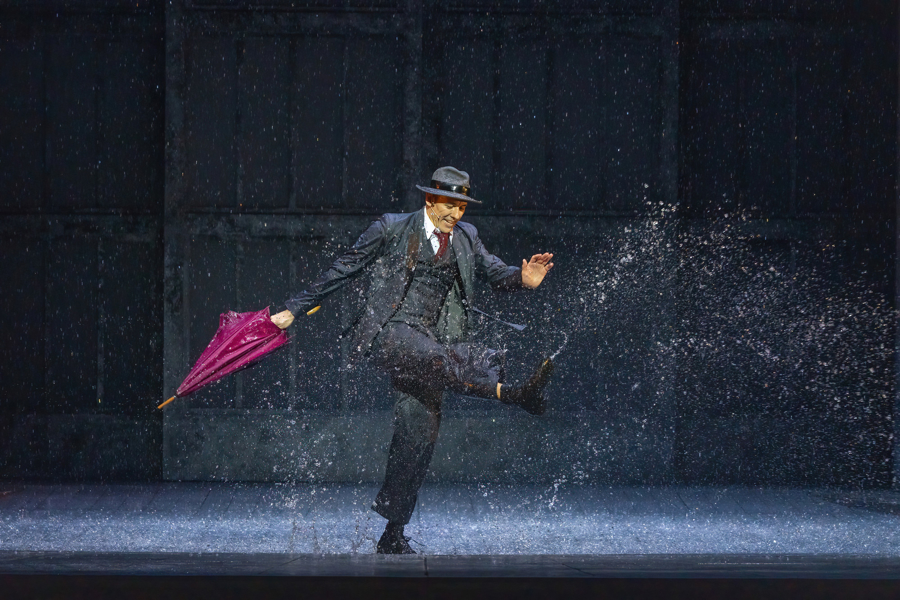 舞台湿滑让跳舞难度倍增,服装妆发被淋透后更是举手维艰。在雨中又唱又跳还要演——每一位演员皆必须炼就“雨东说念主三项”的真功夫。而当6吨恒温雨水流泻而下,格兰特在雨中扬起嘴角的那一刻,吉恩·凯利的影子与当下的欢喜悄然重复。《雨中曲》的罢休,在这整宿的舞台上,再行活了过来。