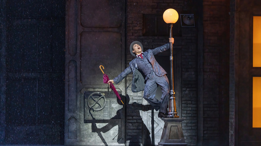 音乐剧《雨中曲》改编自米高梅同名传世电影,以好莱坞默片向有声时间转型为配景,打造升迁时间的舞台经典。